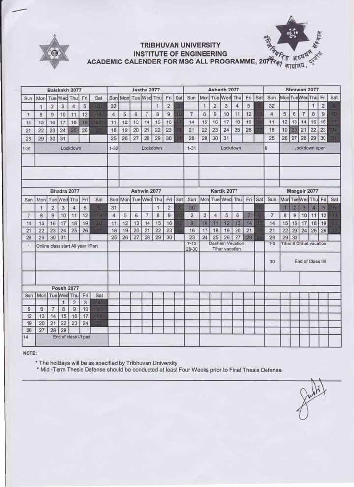 I.O.E has finally publised its Academic Calendar. Including Imp dates, holiday and plans.