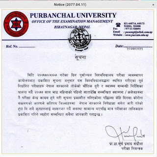 कोरोना र विद्यार्थीको अवस्थाले तलको सुचना निकालियो :